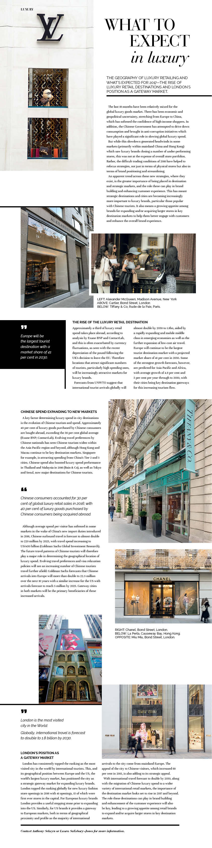 THE geography of luxury retailing and what's expected for 2017—The rise of luxury retail destinations AND London's position as a gateway market.