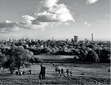 Playing in Primrose Hill with my sister and having a race to see who could reach the top first (she won).